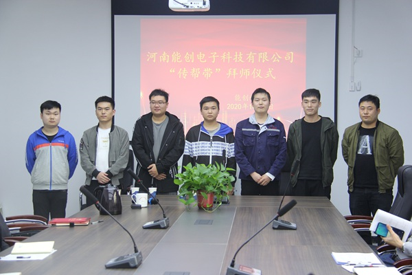 2020年10月9日下午,在公司中层以上领导和全体技术部员工见证下能创科技进行了“传帮带”拜师仪式。张保山总经理对拜师仪式发表了热情洋溢的致辞,师徒签订了传帮带协议,徒弟给师傅敬茶、鞠躬,并合影留念。“传帮带”—直是能创科技企业文化中的重要—环,不仅能让新员工快速地融入团队、快速成长,也使老员工积几主动的言传身教。“新型学徒制”不仅是能创科技公司管理的—种创新,也是河南省产教融合型企业建设精神的实践,师徒不仅在工作中,而且在各方面将成为良师益友,互帮互助,共同进步!